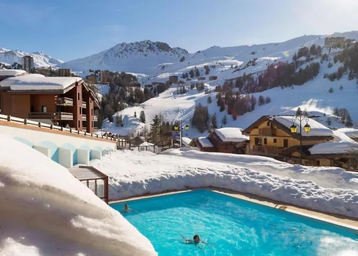 Charmant Logement Avec Balneo - La Plagne 1800地处拉普拉涅,距离帕拉迪斯基滑雪度假村有900米,有桑拿 和私人游泳池等娱乐设施. 您走20分钟即可抵达奥雷缆车.